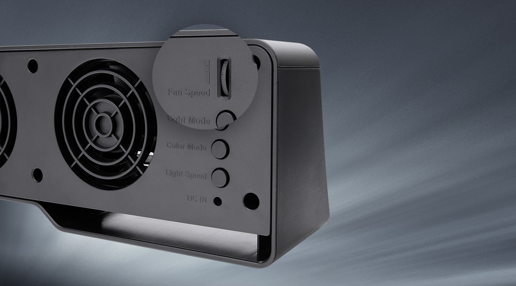 Der Nutzer kann den Regler auf der Rückseite des Tischkühlers einfach auf die gewünschte Lüftergeschwindigkeit einstellen.