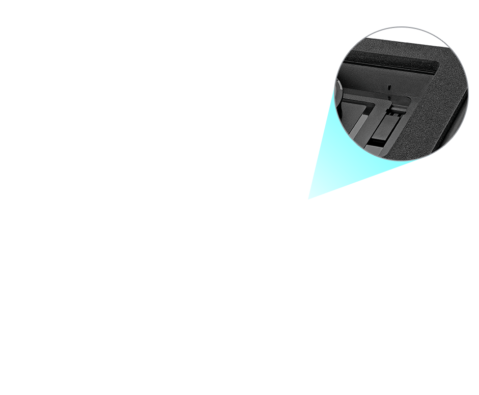 Das Massive EXTREME ist mit zweistufigen Sockelanhebungen ausgestattet, die drei verstellbare Höheneinstellungen bieten, sowie mit zwei versteckten Anhebungen in der Nähe des Querstromlüfters für zusätzliche Höhe. Diese Anpassungen sorgen für eine bequeme Schreibposition und verbessern Ihr Nutzungserlebnis.