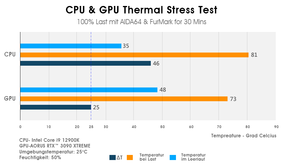 Bei Thermaltake werden unsere Produkte stets unter den härtesten Bedingungen getestet, um die Produktqualität sicherzustellen. Die Tower 500-Produkte wurden bei 100 % Volllast mit der zum Zeitpunkt des Tests leistungsstärksten CPU, GPU und Hauptplatine getestet.