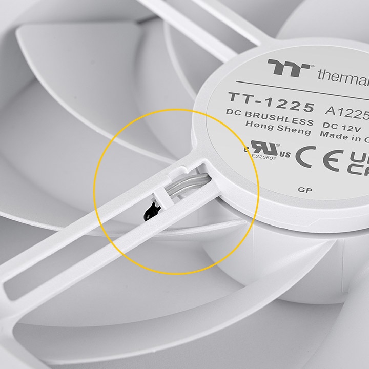 Mit einem Temperatursensor an der Rückseite des Lüfters bietet der TS EX RGB eine zusätzliche Lüftergeschwindigkeitssteuerung. Dieser Sensor kann die Lufttemperatur in der Nähe des Lüfters überwachen und ermöglicht so eine dynamische Geschwindigkeitssteuerung auf Basis der lokalen Bedingungen.
